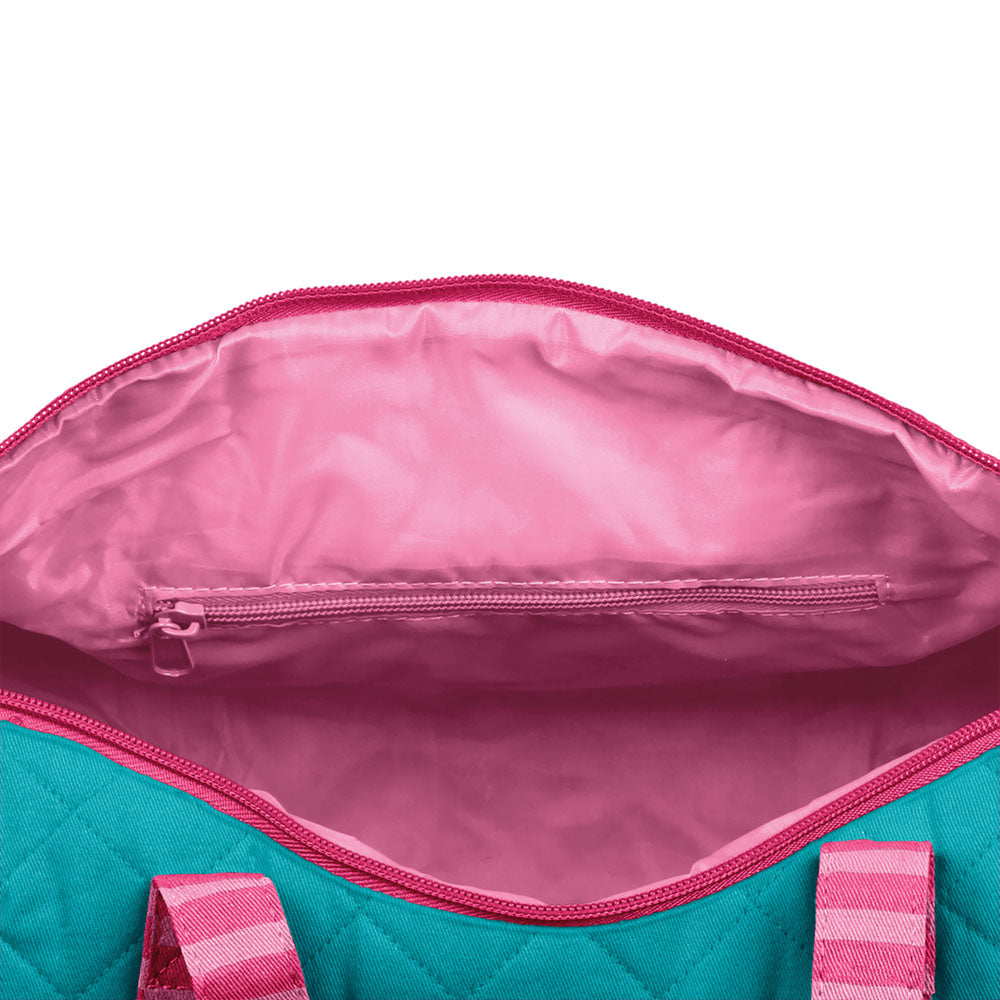 These fantastic grab-and-go Stephen Joseph Quilted Duffels are perfect for your child’s after school club needs. With two over-the-shoulder straps and a huge compartment, they’re easy to fill up with their soccer kit, ballet outfits, swim gear and so much more. The bright standout designs are beautifully appliquéd and each have coordinating straps and zipper pull, adding loads of fun to your kids’ activities. Mom might even want to borrow it for Pilates.