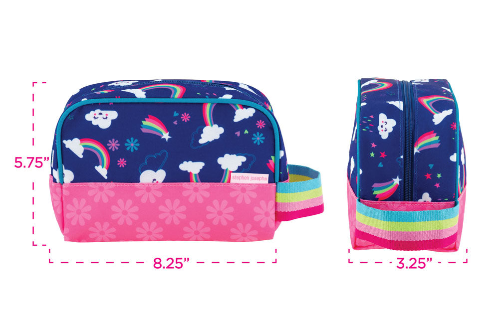 Simplify travel by giving your little one a toiletry case all their own. These super cute travel cases are the perfect size to hold all their bed time supplies, plus a couple of bath time toys. These bags are designed to coordinate with the Stephen Joseph duffel bags and rolling luggage to make a real travel statement. We have also made sure that these travel sidekicks are machine washable and have a wipeable lining to quickly clean any messes that happen in transit.