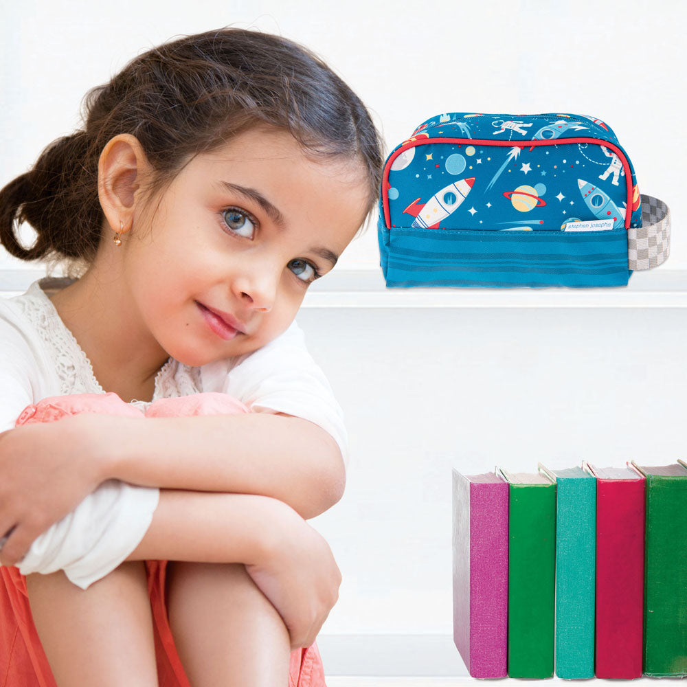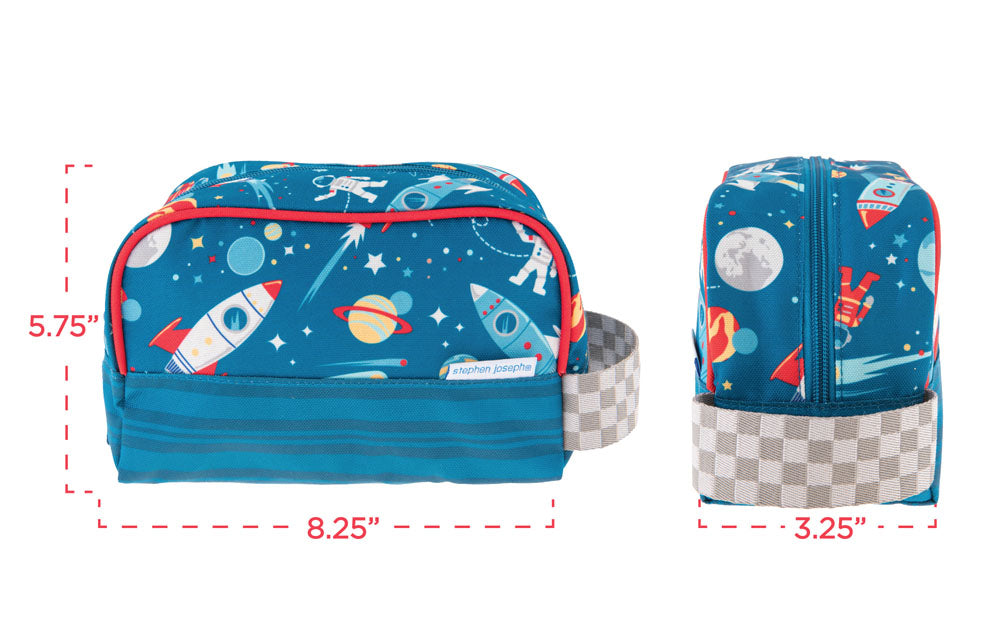 Simplify travel by giving your little one a toiletry case all their own. These super cute travel cases are the perfect size to hold all their bed time supplies, plus a couple of bath time toys. These bags are designed to coordinate with the Stephen Joseph duffel bags and rolling luggage to make a real travel statement. We have also made sure that these travel sidekicks are machine washable and have a wipeable lining to quickly clean any messes that happen in transit.