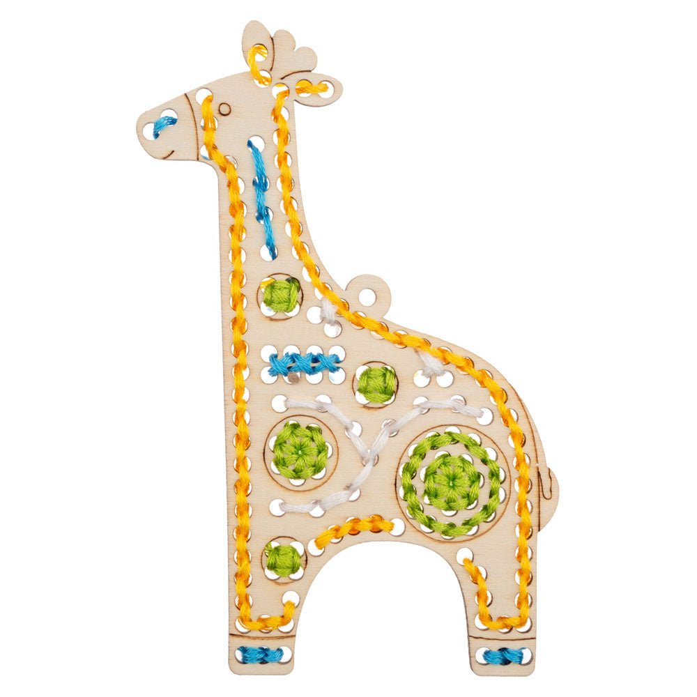 - 4 wooden lacing cards, 4 colorful laces, 4 felt backing pieces